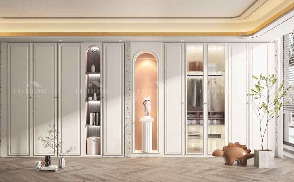 Tủ áo là món nội thất không thể thiếu trong mỗi phòng ngủ. LD Home chuyên thi công tủ áo đụng trần, tủ 2–3–4 cánh, tủ cánh lùa, tủ kết hợp bàn trang điểm… giúp lưu trữ khoa học mà vẫn giữ được vẻ gọn gàng, hiện đại cho không gian.