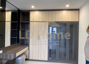 Phòng ngủ: Bàn trang điểm kết hợp với tủ quần áo giúp tăng diện tích cho căn phòng
