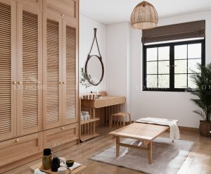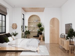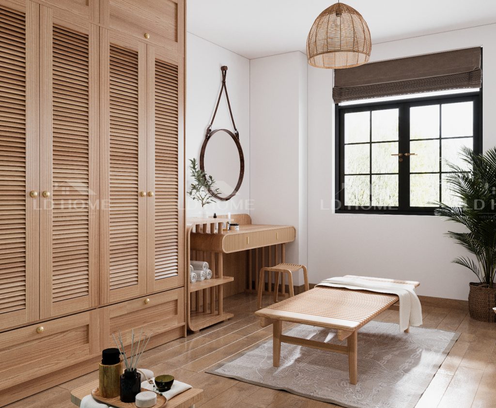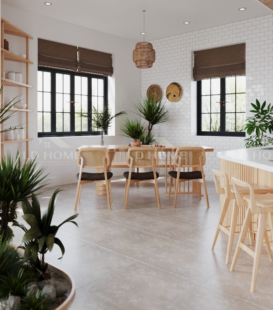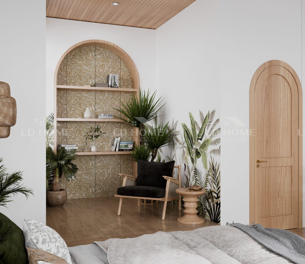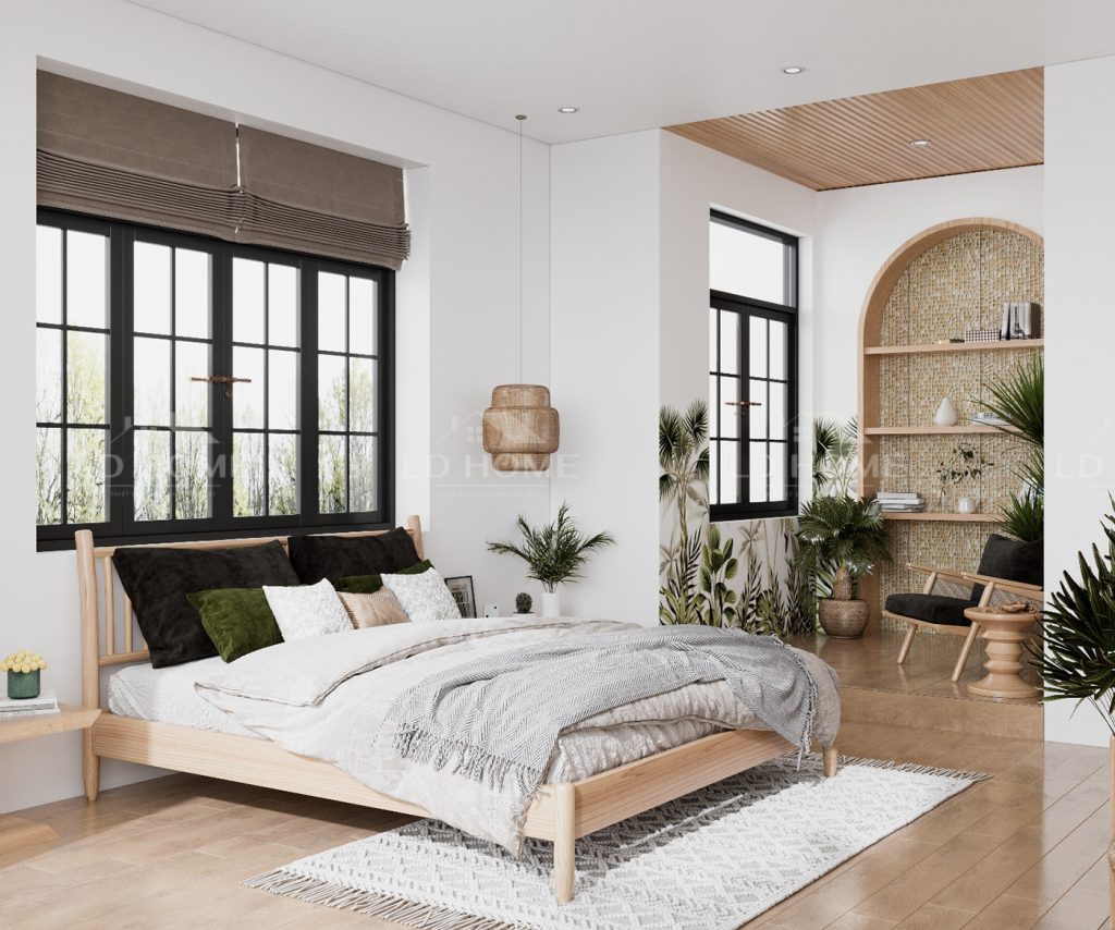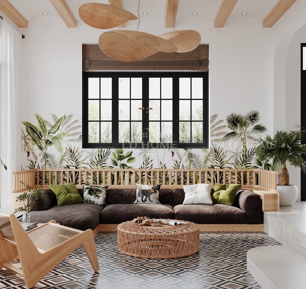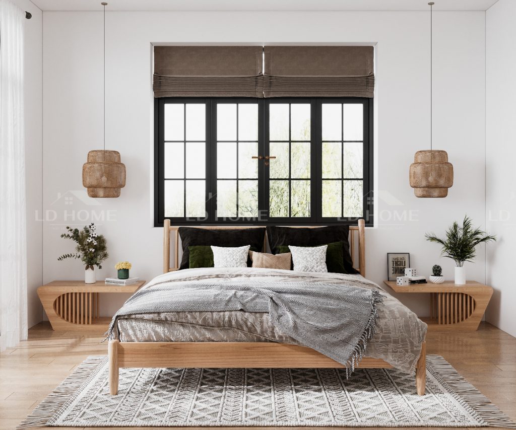 🪵 Chất liệu tự nhiên: Gỗ sáng màu, mây tre, vải linen, cotton… tạo cảm giác mộc mạc nhưng tinh tế.